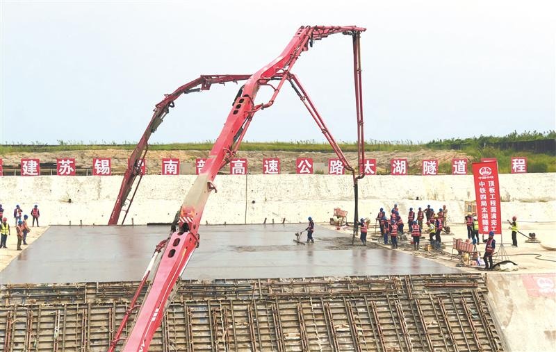 伴隨著28名施工人員和泵車長達(dá)20個小時的連續(xù)作業(yè),澆筑、攤鋪反復(fù)多次,約1750立方米的混凝土澆筑至太湖隧道南泉段第6倉頂板上。昨天上午11點左右,最后一方混凝土從罐車澆向作業(yè)面,太湖隧道南泉段主體結(jié)構(gòu)竣工,長達(dá)10.79公里的湖底隧道實現(xiàn)南泉段全“閉合”。蘇錫常南部高速公路全線預(yù)計年內(nèi)可交工投用。