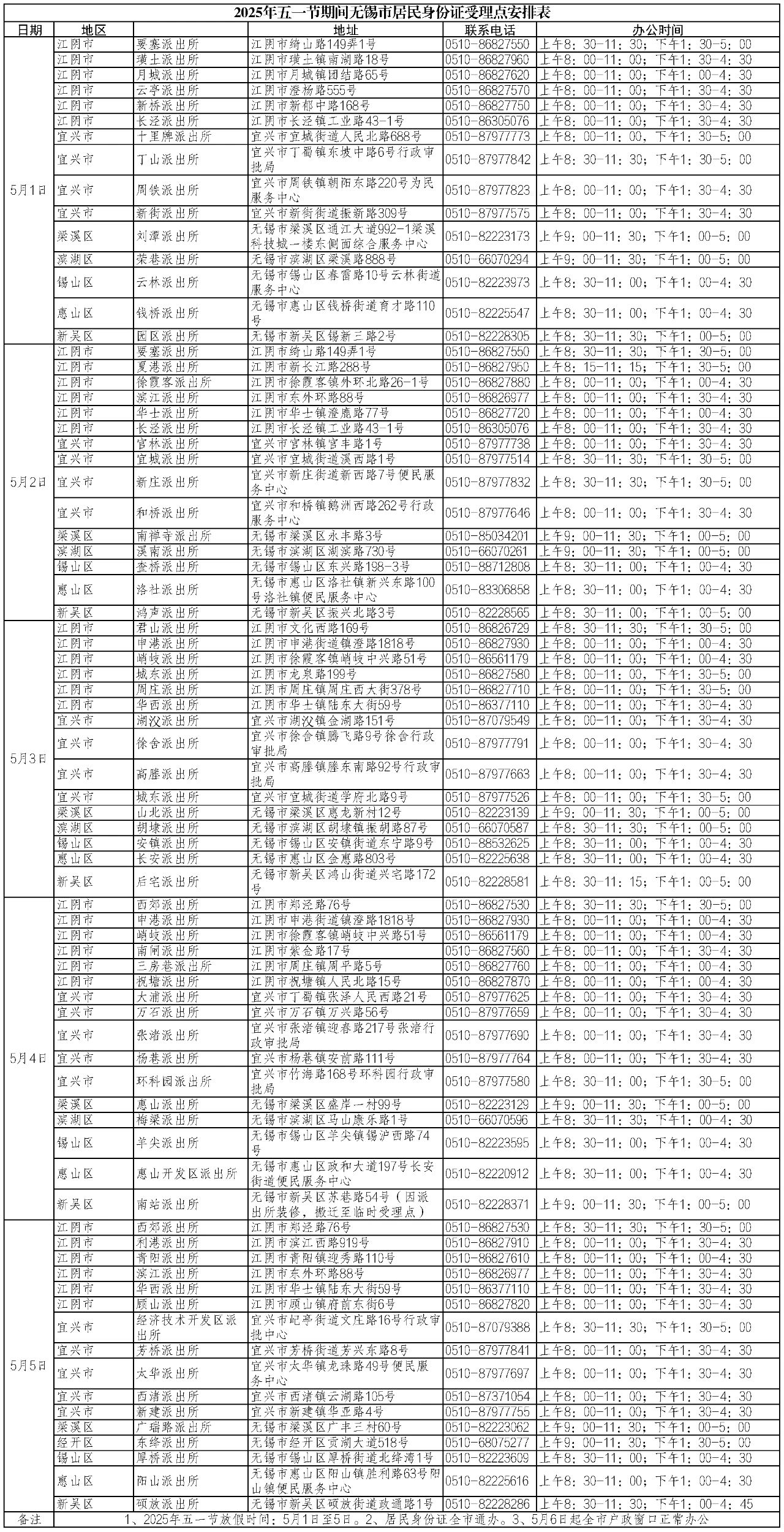 5月1日至5日,各市(縣)、區(qū)公安戶籍窗口開設居民身份證受理點正常辦理業(yè)務。