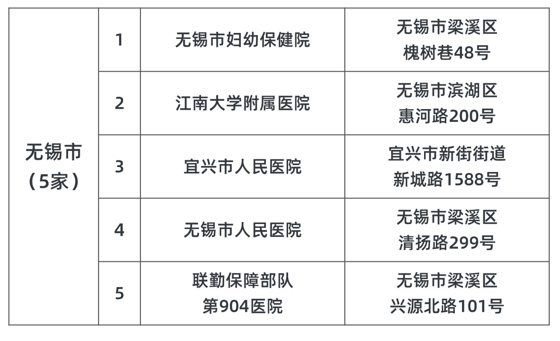 附表1:開展人類輔助生殖技術的醫(yī)療機構名單(無錫)