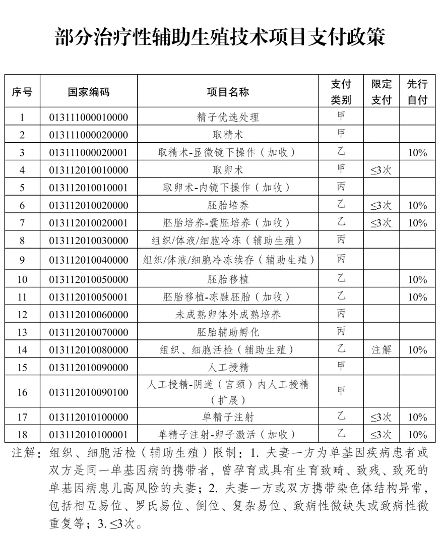 “胚胎培養(yǎng)”等13個輔助生殖類醫(yī)療服務項目自2024年7月1日起納入醫(yī)?;鹬Ц斗秶w了開展人工授精和試管嬰兒等常用必要的醫(yī)療性輔助生殖技術,全省實行統(tǒng)一醫(yī)保支付政策,參保人員在省內(nèi)符合衛(wèi)生健康和醫(yī)保等相關政策規(guī)定的醫(yī)療機構(見附表1),實施人類輔助生殖技術發(fā)生的13項輔助生殖技術項目(見附表2)的門診治療費用,實行門診按項目單獨支付,職工醫(yī)保和居民醫(yī)保參保患者除先行自付部分外,統(tǒng)籌基金分別按80%和70%予以支付。