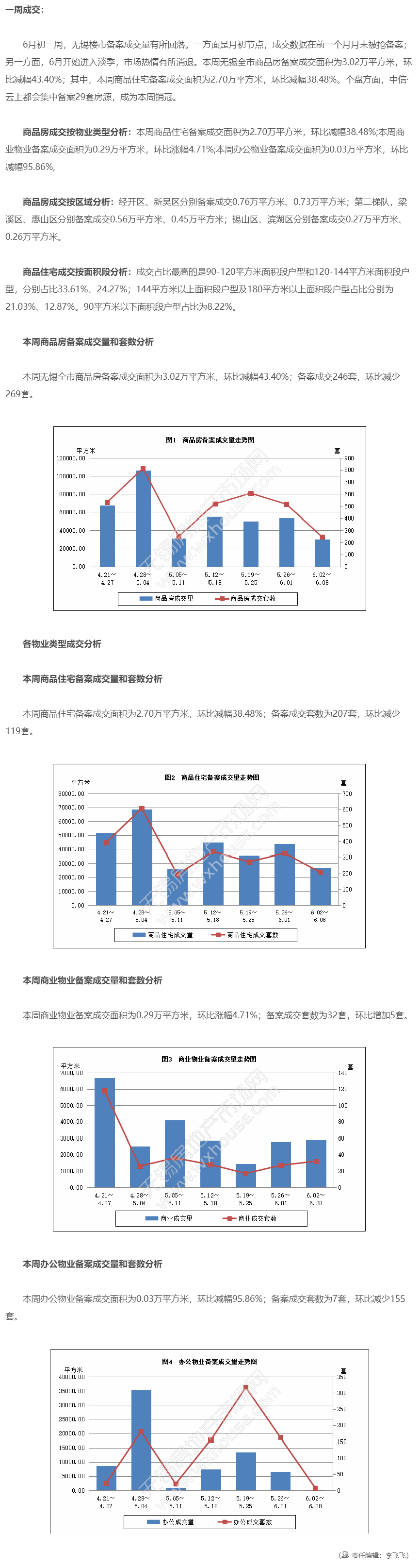 6.02~6.08無錫商品房一周備案成交3.02萬平方米 |