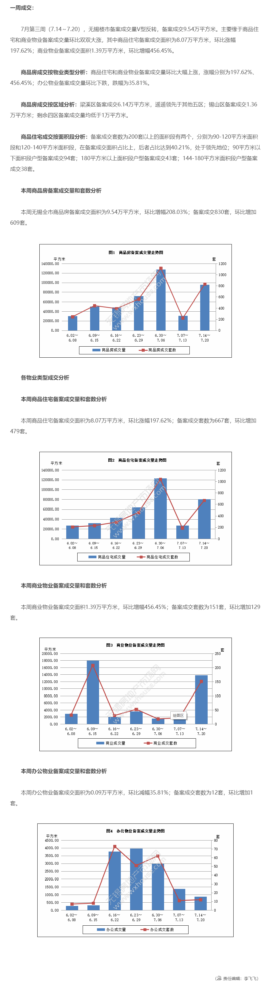 7.14~7.20無錫商品房一周備案成交9.54萬平方米 |