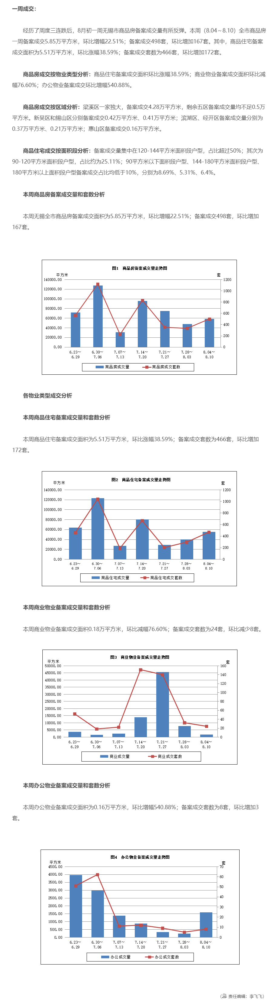 8.04~8.10無錫商品房一周備案成交5.85萬平方米 |
