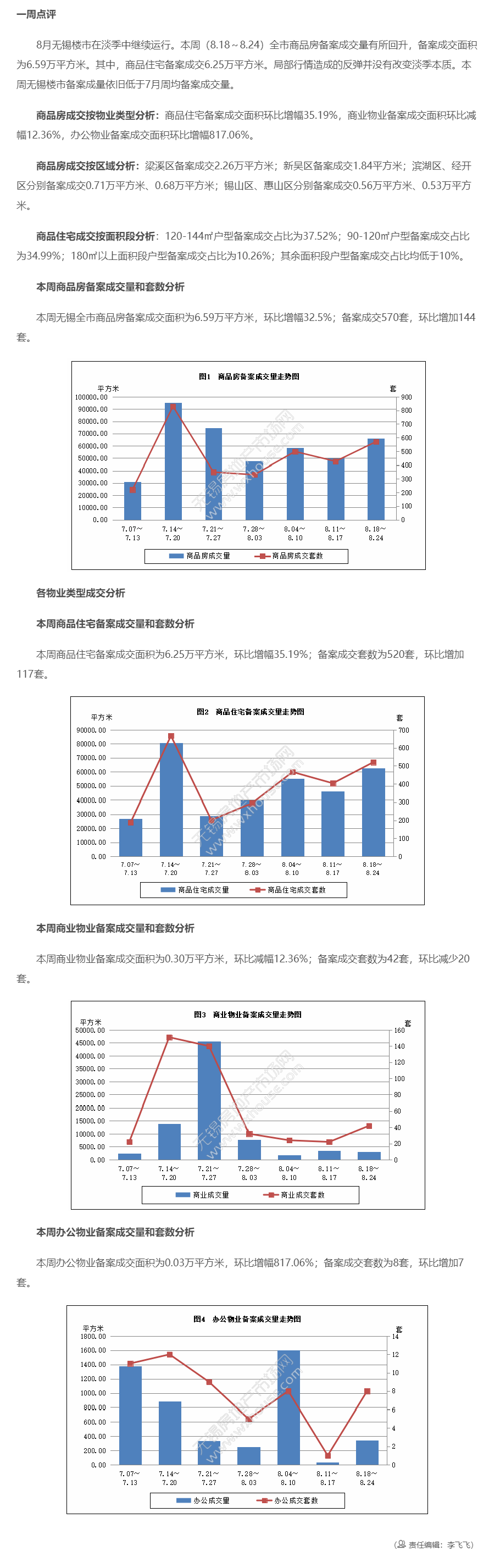 | 內(nèi)容概述 | 8.18~8.24無(wú)錫商品房一周備案成交6.59萬(wàn)平方米 | ||||
