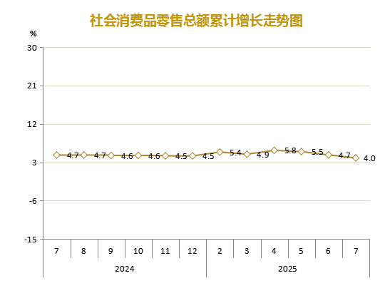 | 內(nèi)容概述 | 2025年1-7月社會消費(fèi)品零售總額增長4.0% | ||||