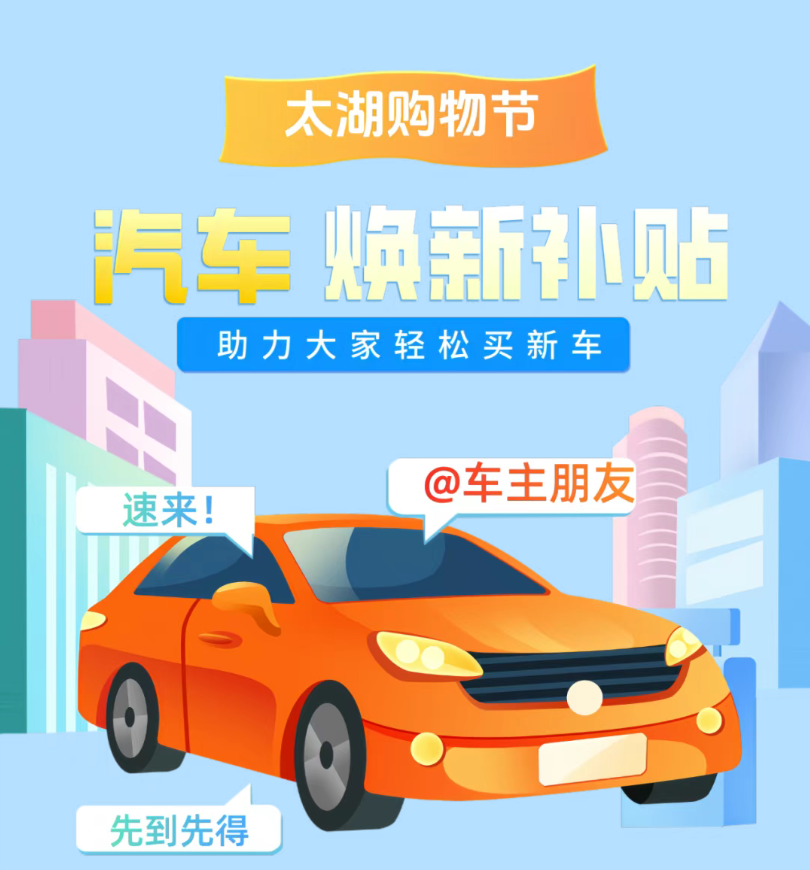 為更好順應(yīng)汽車消費(fèi)需求,激發(fā)大宗消費(fèi)活力,我市在2025年9月5日至12月31日期間,開展太湖購(gòu)物節(jié)汽車煥新補(bǔ)貼活動(dòng)。本次補(bǔ)貼投放總額2億元,實(shí)行“總量控制、先到先得、用完即止”。