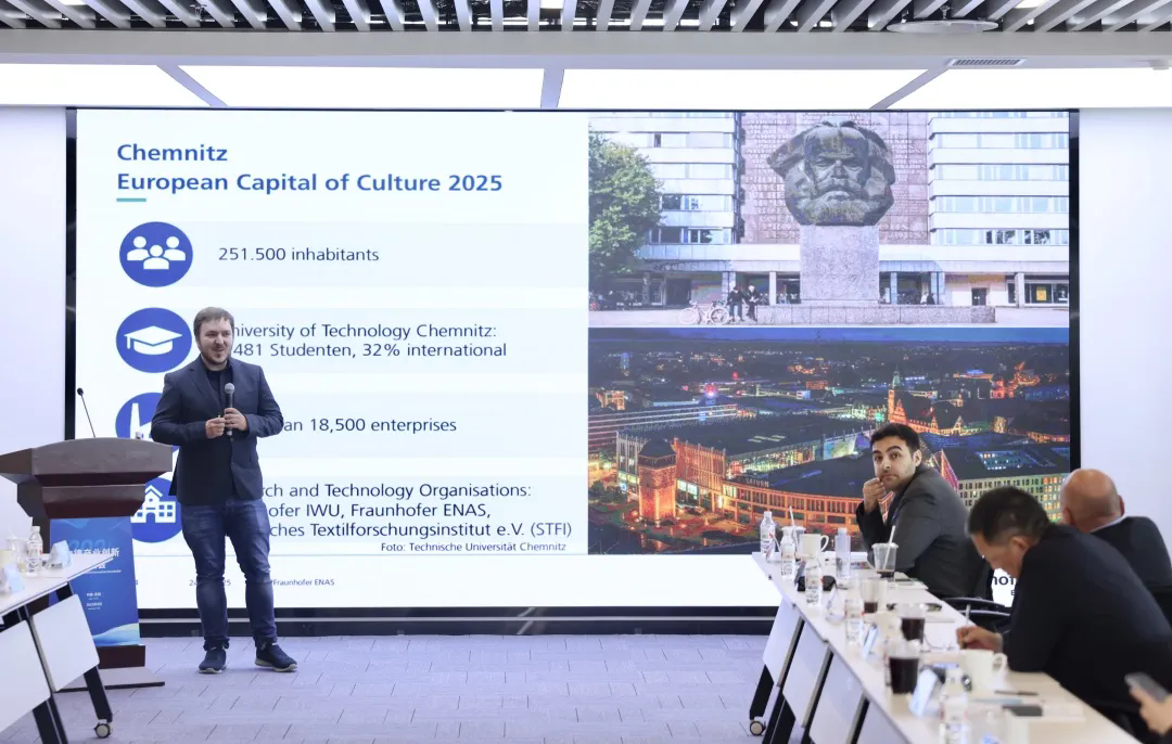 一端是德國(guó)“硬核創(chuàng)新力量”:奧斯卡?海登教授、安德拉尼克?圖馬斯揚(yáng)教授攜頂尖科研智慧到場(chǎng);弗勞恩霍夫協(xié)會(huì)電子納米所、萊茵美因Launch創(chuàng)新中心帶來(lái)技術(shù)轉(zhuǎn)移經(jīng)驗(yàn);Enviotech、Quantagonia等前沿企業(yè)則帶著“可落地技術(shù)方案”,精準(zhǔn)回應(yīng)中國(guó)產(chǎn)業(yè)“突破核心技術(shù)、加速成果轉(zhuǎn)化”的需求。
