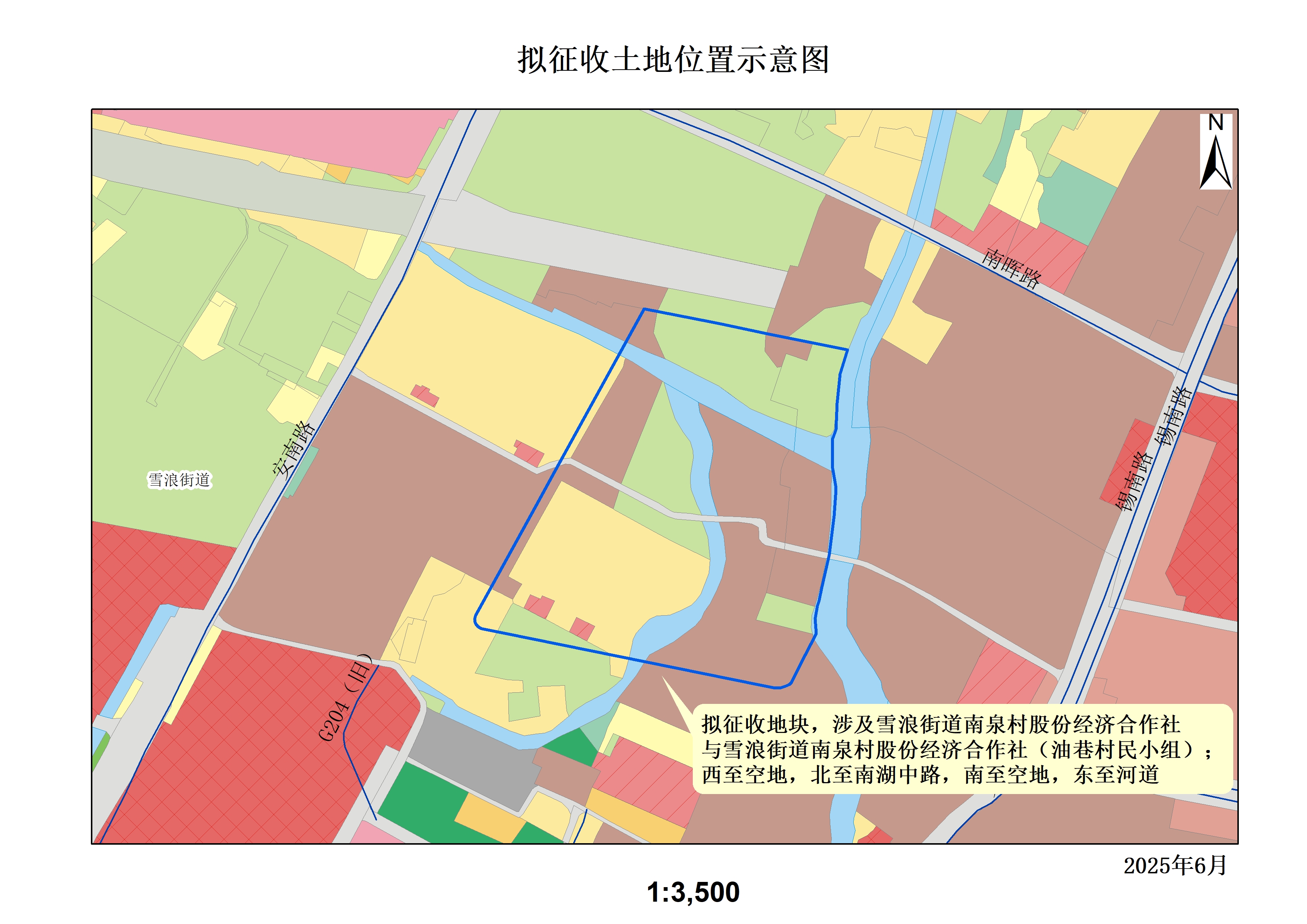 2、無錫市濱湖區(qū)雪浪街道南泉村股份經(jīng)濟合作社(油巷村民小組)集體土地1.5856公頃(23.784畝),其中建設用地1.2934公頃(19.401畝);未利用地0.2922公頃(4.383畝)。