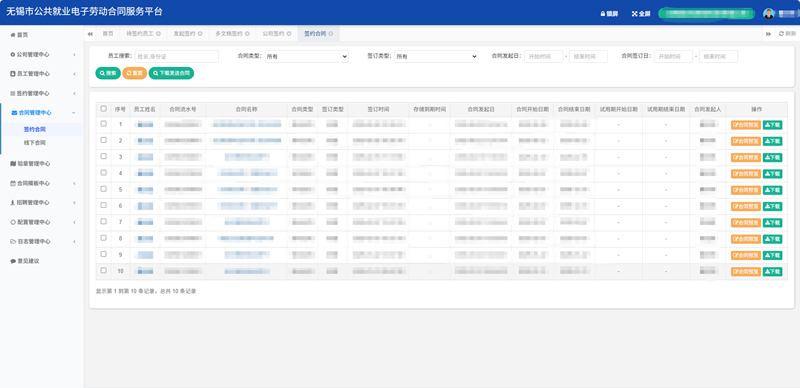 平臺(tái)試運(yùn)行以來(lái),已累計(jì)服務(wù)60余家企業(yè),簽訂電子勞動(dòng)合同超2000份。作為首批“嘗鮮”的企業(yè),無(wú)錫地鐵運(yùn)營(yíng)有限公司人力資源部副部長(zhǎng)張弛算了一筆“效率賬”:9月初,公司300余名員工進(jìn)行勞動(dòng)合同續(xù)簽,原先需要把員工集中到大會(huì)議室,現(xiàn)場(chǎng)填寫、核對(duì)、蓋章,由于工種多樣,填寫易出錯(cuò),公司不得不準(zhǔn)備近1.5倍數(shù)量的空白合同備用,整個(gè)過(guò)程耗時(shí)費(fèi)力。