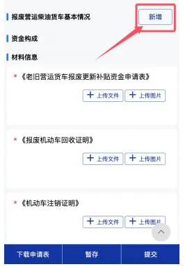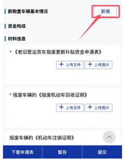 4.下載《老舊營(yíng)運(yùn)貨車報(bào)廢更新資金申請(qǐng)表》,打印并簽字蓋章后上傳到申請(qǐng)材料中。