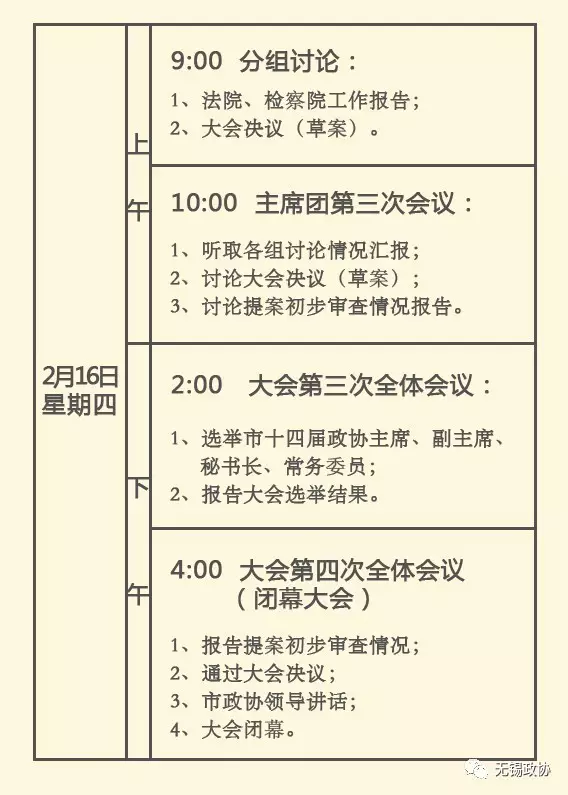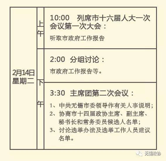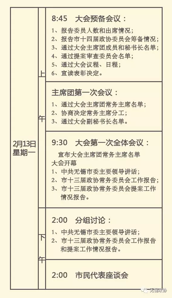 無(wú)錫市第十六屆人民代表大會(huì)第一次會(huì)議日程安排
