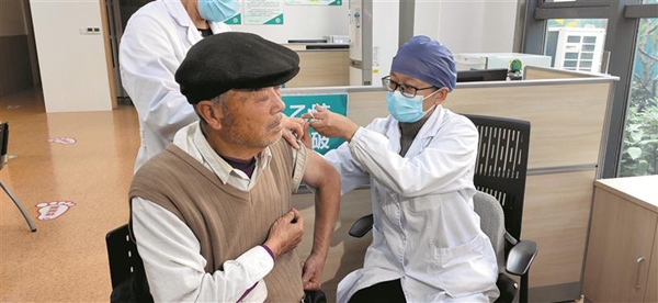 在接種室,醫(yī)生給華老伯測量了血壓,確認(rèn)沒問題后,當(dāng)面與華老伯核對了疫苗名稱和批號,隨后給他注射了疫苗,并告知接種后的注意事項。“這里的醫(yī)生態(tài)度很好,服務(wù)也很周到。”華老伯滿意地說。
