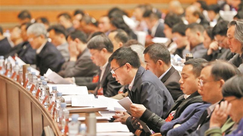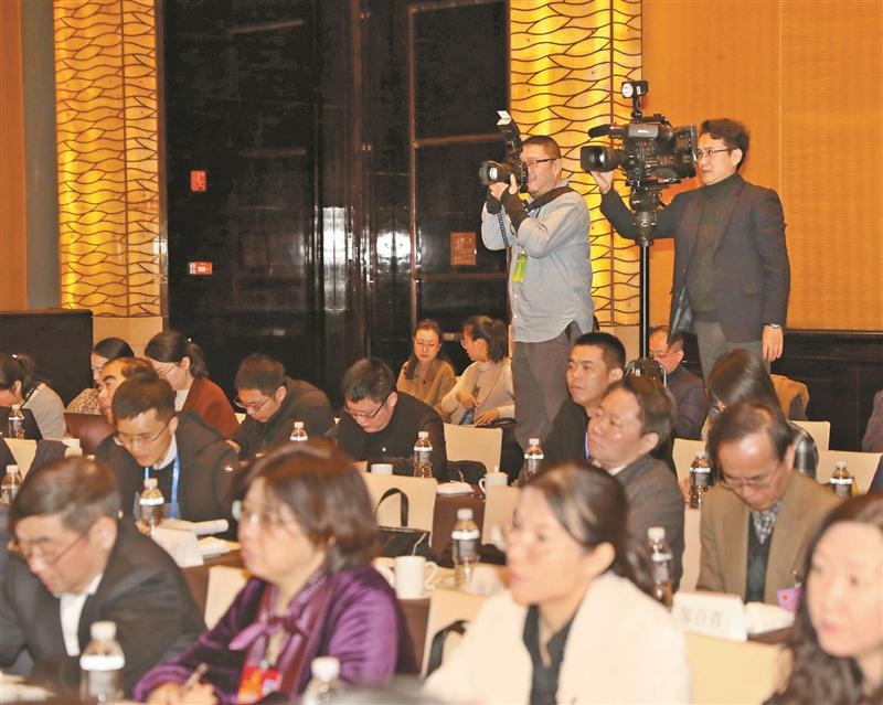 委員們?cè)谡J(rèn)真聽(tīng)取工作報(bào)告