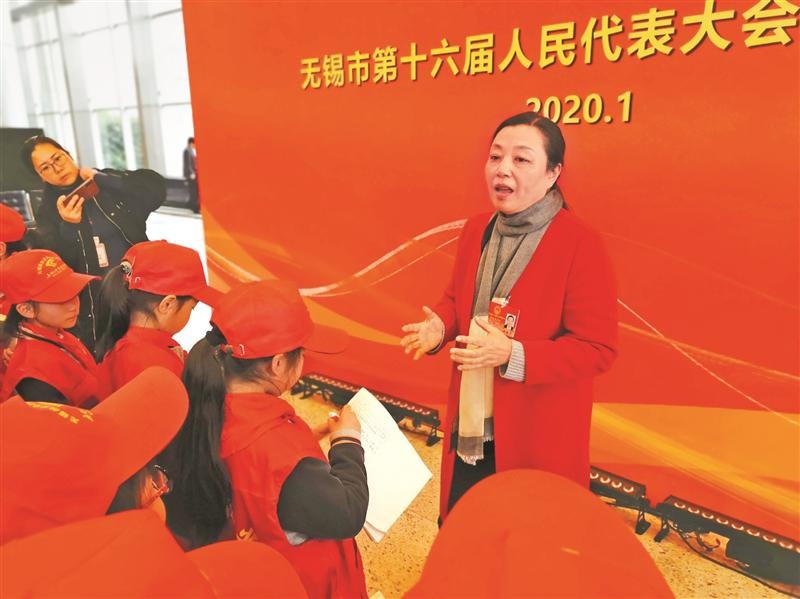 無(wú)錫報(bào)業(yè)小記者在采訪人大代表