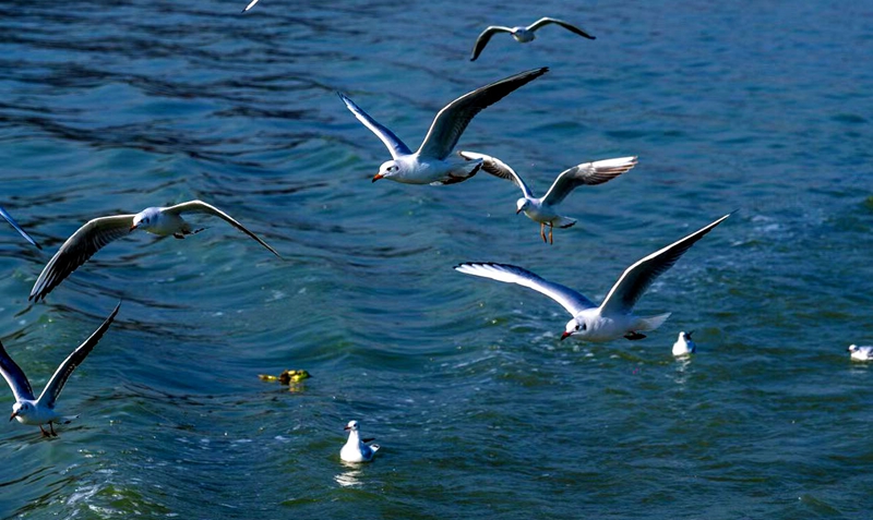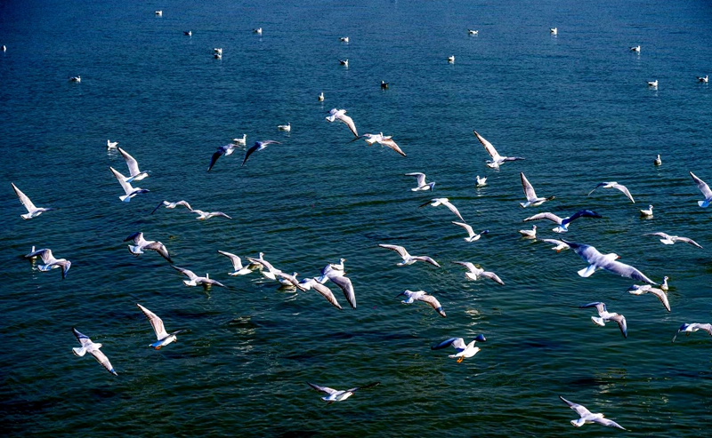 12月4日,大量紅嘴鷗在無(wú)錫黿頭渚風(fēng)景區(qū)太湖水面上翱翔。