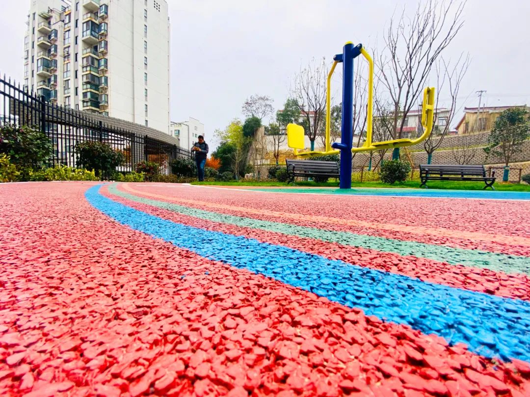 漫步其中,生態(tài)擋土墻構造出層次豐富的臺地景觀,曲線臺階園路連接圓形塑膠活動場地,設計現(xiàn)代感滿滿。