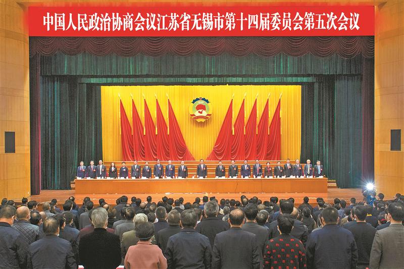 1月21日,政協(xié)無錫市十四屆五次會議在莊嚴的國歌聲中勝利閉幕。(盧易 攝)