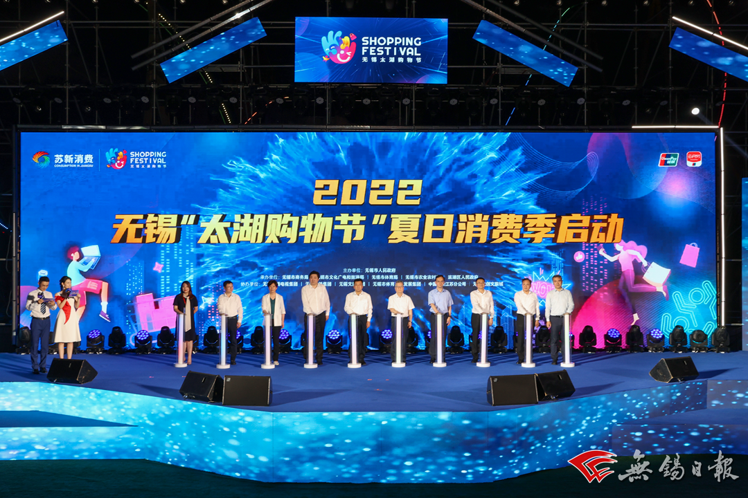 7月23日晚,2022無(wú)錫“太湖購(gòu)物節(jié)”夏日消費(fèi)季啟幕儀式在融創(chuàng)文旅城舉行。