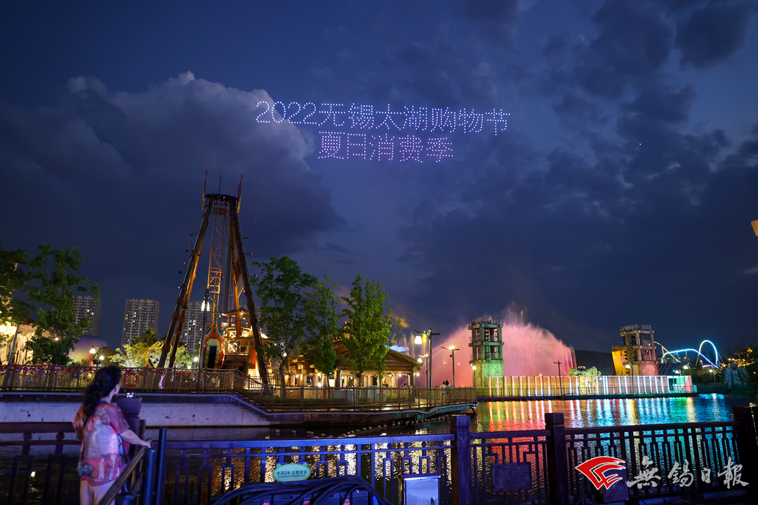 當(dāng)晚的融創(chuàng)文旅城流光溢彩、游人如織,熱鬧非凡。無(wú)人機(jī)編隊(duì)的精彩表演點(diǎn)亮夏夜,“煙火無(wú)錫”燈光市集上各類(lèi)特色農(nóng)副產(chǎn)品和精美的文創(chuàng)產(chǎn)品琳瑯滿(mǎn)目,吸引不少市民前來(lái)“打卡”消費(fèi)。