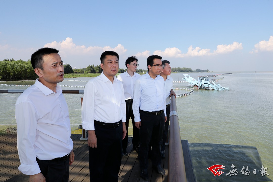 安全度夏,措施一絲不茍。在許仙港藻水分離站看到,多臺增氧曝氣裝置全力運轉,兩艘加壓控藻船正在開展作業(yè)。杜小剛詳細了解今年太湖無錫水域水質、藻情、清淤等情況,叮囑要加強監(jiān)測預警,根據(jù)水質、藻情科學調度水利工程,周密組織做好藻水分離、淤泥固化等后續(xù)工作,確保閉環(huán)管理、順暢運行。經(jīng)過綜合整治后,新港-廟港段沿湖大堤藍藻聚集蘆葦蕩的現(xiàn)象大為改觀。杜小剛走上打撈平臺,查看加壓控藻深井運行和周圍環(huán)境整治情況,要求不斷提高蘆葦蕩區(qū)域的水體流動性,充分發(fā)揮湖濱生態(tài)濕地帶“消化”藍藻、保灘固堤、凈化水質等功能,構建起太湖岸基生態(tài)屏障。南泉水源廠是我市重要飲用水水源地之一,今年以來供水生產穩(wěn)定、出水安全優(yōu)質,主要水質指標均優(yōu)于國標?,F(xiàn)場看到,智能化無人監(jiān)測預警船正在水源地周邊開展實時監(jiān)測。杜小剛來到沙渚水源地,站在棧橋上俯身查看水質,詳細詢問水源地安全度夏智慧管控平臺運行情況,叮囑要加強水質預警監(jiān)測,制定優(yōu)化供水應急方案,注重制水工藝改進,不斷提高飲用水水質,為我市生活生產用水提供安全可靠保障。