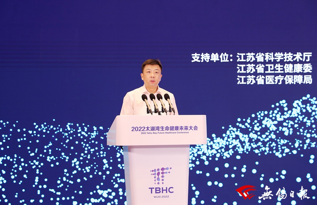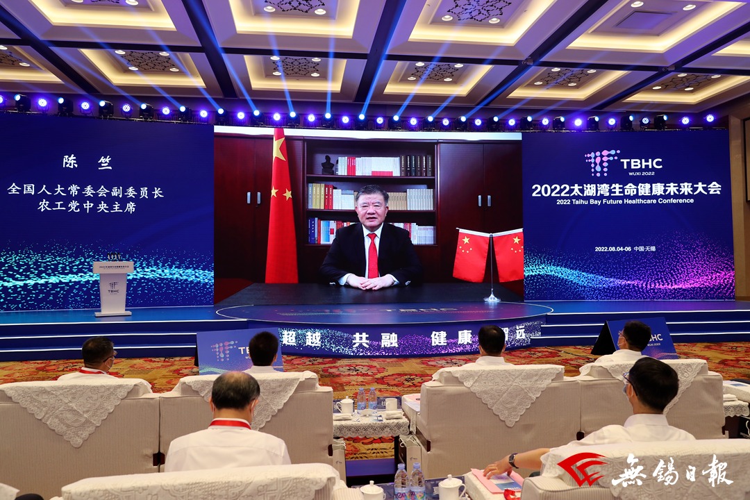 8月4日,2022太湖灣生命健康未來大會隆重舉行。國內(nèi)外院士和生物醫(yī)藥產(chǎn)業(yè)頭部基金代表、行業(yè)領(lǐng)軍企業(yè)代表齊聚錫城、發(fā)聲論道,共話人類健康未來。全國人大常委會副委員長、農(nóng)工黨中央主席陳竺視頻講話。副省長胡廣杰到會祝賀,市委書記杜小剛致辭。國家藥品監(jiān)督管理局原副局長陳時飛、省政府副秘書長張文浩、市長趙建軍出席開幕式。中國工程院院士、江南大學(xué)校長陳衛(wèi)和中國科學(xué)院院士、東南大學(xué)附屬中大醫(yī)院院長滕皋軍作主旨演講,上海證券交易所副總經(jīng)理董國群致辭。市領(lǐng)導(dǎo)蔣敏、徐劼、韓曉楓,市政府秘書長陳壽彬,國家和省有關(guān)部門和機構(gòu)負(fù)責(zé)同志,以及知名投資機構(gòu)、生物醫(yī)藥企業(yè)和行業(yè)協(xié)會代表參加開幕式。副市長周文棟主持。