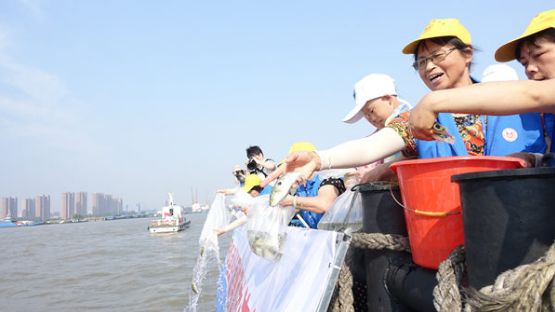 恢復魚類資源,“以江為生”的江陰人率先自發(fā)開始增殖放流。“第一次是2002年6月20日,在長江江陰利港段,我將親手培育繁殖的40萬尾河豚魚苗無償放流。”年過七旬的“河豚大王”鄭金良記憶猶新。一石激起千層浪,一次放流行動就引發(fā)了更多人對保護“母親河”魚類資源的關注,江陰市更是把每年的6月12日定為“長江放流日”,引領更多人參與到長江大保護的歷史實踐中。