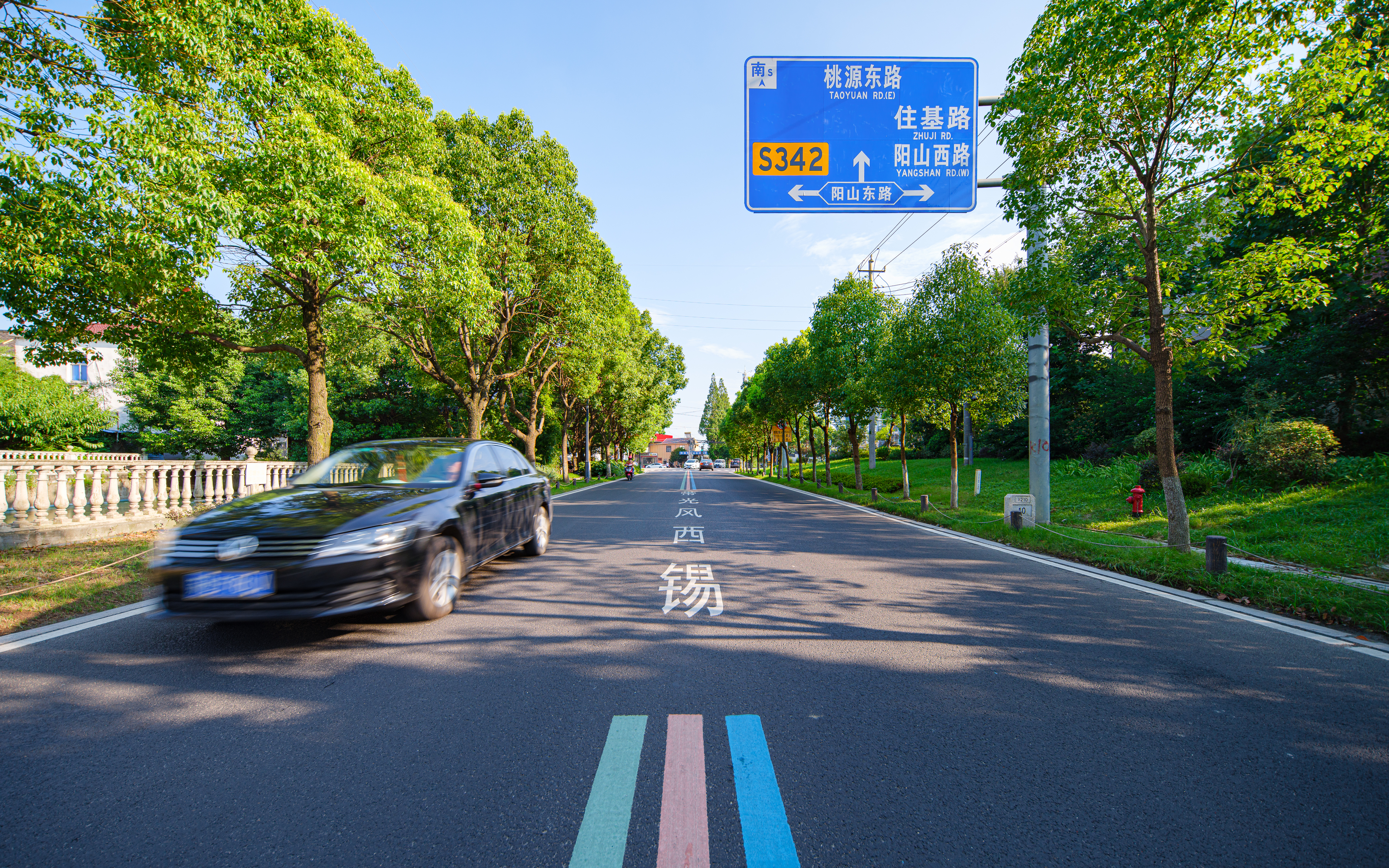 道路途經(jīng)網(wǎng)紅打卡地田園東方蜜桃村、陽山野花園,沿線綠化、小品與周邊桃林等自然風(fēng)光相融合,吸引大批自行車、馬拉松、自駕游愛好者,形成“一年四季皆風(fēng)景,山環(huán)水繞桃花源”的風(fēng)情獨(dú)特的旅游風(fēng)景線。
