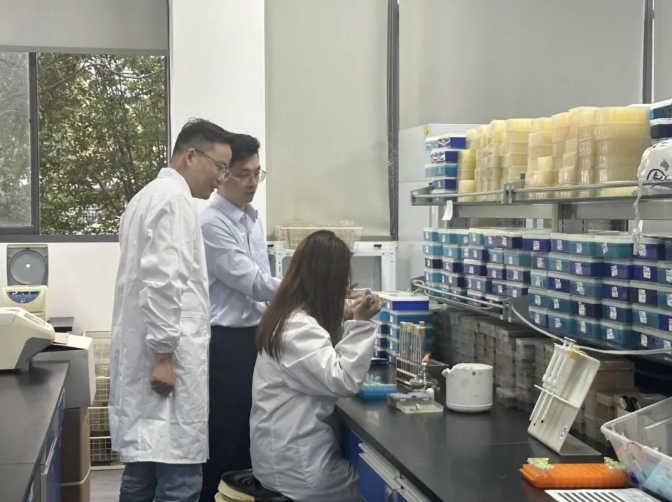 ?。▓D說:江蘇銀行信貸經(jīng)理在賽索飛生物科技有限公司了解企業(yè)研發(fā)及生產(chǎn)情況)