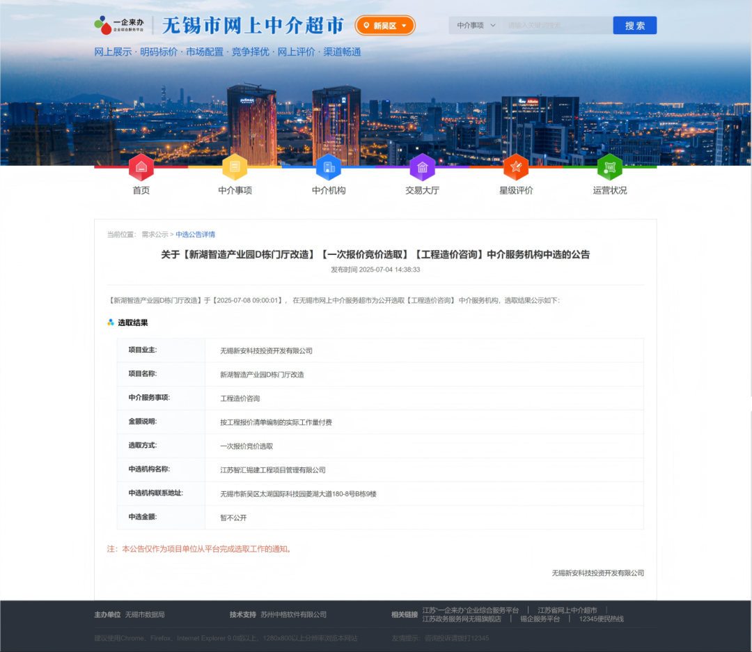 近日,無錫“網(wǎng)上中介超市”新吳頻道上,上線不足一個(gè)月的AI數(shù)字管家“福寶”立功了。在“福寶”全程引導(dǎo)下,江蘇智匯錫建工程項(xiàng)目管理有限公司成功斬獲新湖智造產(chǎn)業(yè)園D棟門廳改造工程造價(jià)咨詢項(xiàng)目,成為全省首單落地的“數(shù)字人+網(wǎng)上競價(jià)”案例。