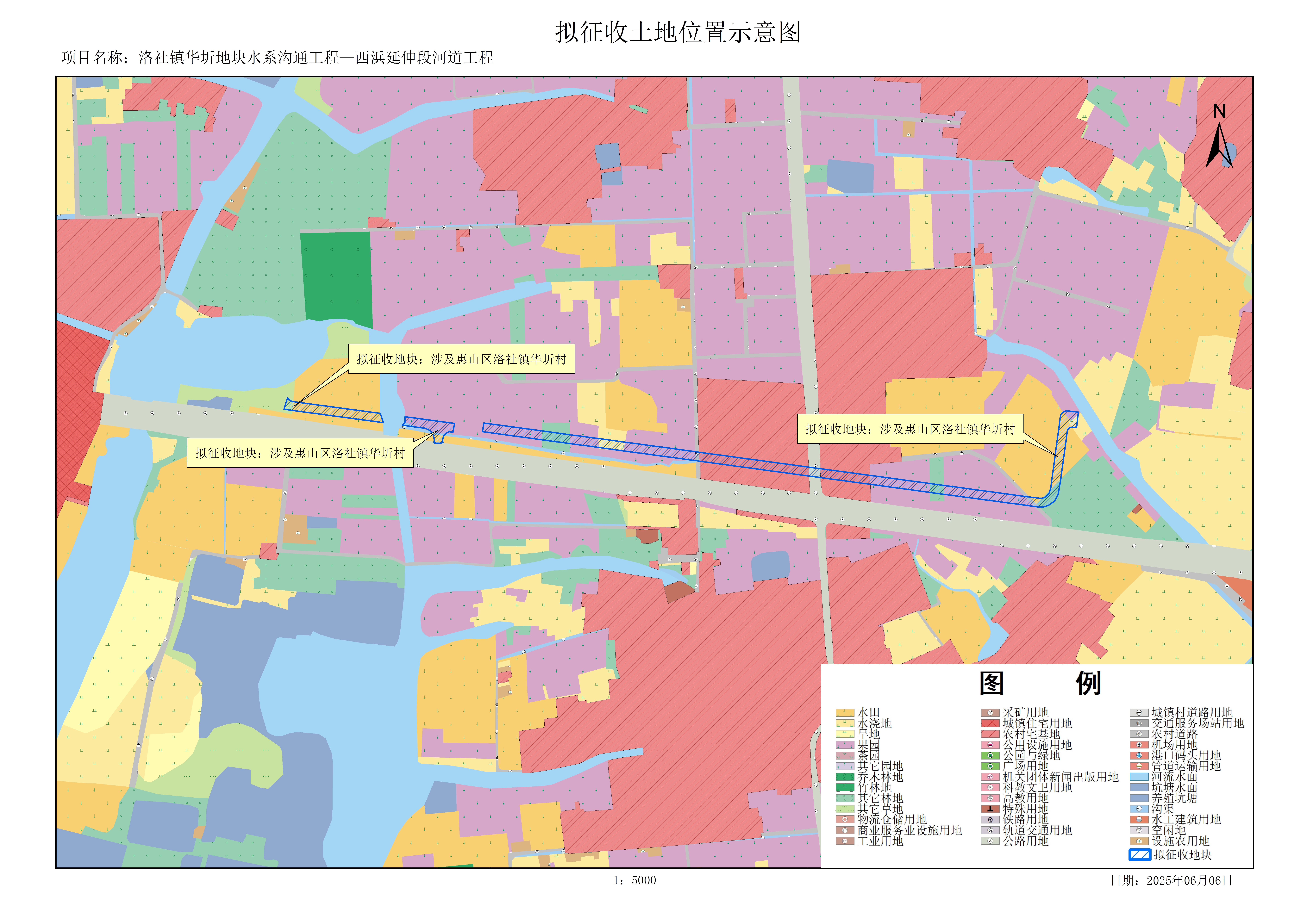 由政府組織實(shí)施的能源、交通、水利、通信、郵政等基礎(chǔ)設(shè)施建設(shè)需要用地,項(xiàng)目名稱為洛社鎮(zhèn)華圻地塊水系溝通工程—西浜延伸段河道工程。